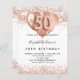 Für einen eleganten 50. Geburtstag. Ein stilvoller weißer Hintergrund. Mit Rose Gold, rosa Imitat Glitzer, Glitzern und Ballons dekoriert. Personalisieren und fügen Sie einen Namen und Party-Details. Der Name ist mit einem handgeschriebenen Stil Skript geschrieben, Nummer 50 mit ballon Stil Schriftart.