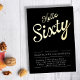 Machen Sie eine Aussage und machen Sie es laut mit dieser lustigen und lebendigen schwarzen und goldenen Folie zum 60. Geburtstag Einladung. Feiern Sie einen besonderen Meilenstein mit diesem einzigartigen Design mit den Worten 'Hello Sixty' Set vor einem schwarzen Hintergrund. Ideal für eine glamouröse und luxuriöse Angelegenheit, diese atemberaubenden Einladungen werden sicher alle Ihre Gäste beeindrucken. Verpassen Sie nicht diese bemerkenswerte Gelegenheit, Ihren besonderen Tag unvergesslich zu machen!
