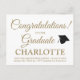 Herzlichen Glückwunsch an unsere Graduierte benutzerdefinierte Skript elegante Abschluss Ankündigung / Einladungen Postkarten. Vollständig anpassbare Imitate Goldtext, weißer schlichter Hintergrund. Mit einem Graduierungsdeckel oben. Modernes, elegantes Typografie-Zeichen, ideal für Kinder und Erwachsene. Diese Postkarten eignen sich hervorragend für Abschluss-Ankündigung, Abschluss-Tageseinladung, Abschlussfeier, etc. Geeignet für Kindergarten, Grundschule, Mittelschule, Oberschule und Uni. Sie können es personalisieren und einzigartig machen.