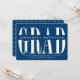 Grosses, feines stylisiertes "grad" in klassisch, knusprig weiß auf einem mittelgrauen Hintergrund. In Marine und Weiß dargestellt, können Sie leicht die Hintergrundfarbe an Ihr Schema oder Thema anpassen. Trendy Kreismuster Koordinaten auf der Rückseite. Eine einzigartige und moderne Abschlussfeier, die geschlechtsneutral und eine großartige Alternative zum Foto ist, lädt ein.
