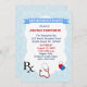 Die ärztliche Verschreibung für den Ruhestand ist eine blaue Einladung mit einem Stethoskop, einem RX-Symbol und roten, weißen und blauen Tabletten.