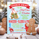 Niedlicher Cookie Exchange Einladung mit einer großen Tasche Weihnachtskochtchen, Bannern, Ugly Sweater, Preisband und lustige Typografie auf einem blass blauen Hintergrund. Ideal für Kinder oder ein erwachsenes Party. Handgezeichnete Abbildung von McBooboo.
