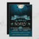 Das Halloween-Party "Essen, trinken und beängstigend sein" mit Spinnen und Fledermäusen in dunkelbläulichen Farben. Personalisieren Sie die Textfelder, um Ihre eigene Halloween-Einladung zu erstellen.