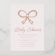 Eine schöne und formelle Babydusche-Einladung mit goldenen Rose-Folienelementen aus Band und Bogen. Ideal für eine klassische Babydusche mit einer modernen und trendigen Drehung. Schwarze Goldfoliendetails schaffen eine hübsche Farbbandbreite mit Vintagem Stil.