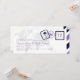 Passen Sie diesen Vintag Boarding-Pass an und verkünden Sie Ihr Hochzeitsdatum auf lustige und einzigartige Weise! In den Tönen der Marine und Medium Lila. Eine Mischung aus Schreibmaschinen-Schriftart und Kalligraphie-Schriftart für ein Vintages Gefühl.