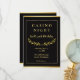 Feiern Sie stilvoll mit dieser eleganten schwarzen und goldenen Casino Night-Einladung, perfekt für runde Geburtstage, Pokerrunden und anspruchsvolle Casino-Themen-Veranstaltungen. Das Design zeigt einen raffinierten schwarzen Hintergrund, gerahmt von einem goldenen Rand und klassischem Lorbeer-Detail für ein zeitloses, exklusives Aussehen.