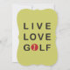 Sie können den ganzen Text auf diesen Golfturnier Einladungen personalisieren. Das Design zeigt ein grünes Bild eines Golfers mit einer Trophäe. Auf der anderen Seite hat es Live, Liebe, Golf Text. Nutzen Sie es für ein elegantes Corporate- oder Wohltätigkeit-Golfturnier. Oder ändern Sie den Text und verwenden Sie ihn für eine Party Einladung.