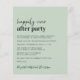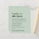 Einfache Weise grüne Budget-freundliche Hochzeit oder Einführung und Empfang Einladung. Die Vorderseite zeigt "Happily Ever After Party" in einer Mischung aus zeitgenössischer Schrift und mutiger moderner Typografie. Personalisieren Sie Ihre Nachricht und Einladung detaillierter und fügen Sie Ihre Namen in ein signaturähnliches Skript ein. Dieses halbglänzende Haushaltspapier ist gewichtsähnlich wie Foto. Es ist auch eine größere 12x18-Kartenversion verfügbar (für den Link die Meldung).