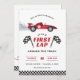 Erster Schlag um die Strecke für deinen kleinen einjährigen Rennfahrer! Super niedliches Rennen Auto 1. Geburtstag Einladungen.