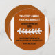 Einzigartige Einladung Fußball Banquet in runder Form, in orange-brauner und weißer Farbe mit den Streifen und Sticken eines Fußballs. Passen Sie den Schwarz-Weiß-Text für die Verleihung von Auszeichnungen für Schule oder Stadtsport an.