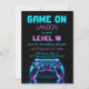 Dieses coole Video-Gaming-Geburtstagsfest lädt mit einem neonfarbenen Gamecontroller-Design mit Typografie und Script-Schriftart in aquamarin und lila auf schwarzem Hintergrund ein. Diese Einladung ist perfekt, um den Geburtstag eines Spielers stilvoll zu feiern. Ideal für Jungen oder Mädchen zum Geburtstag. Die Einladung kann personalisiert sein, Ihren Namen, Ihre Party-Daten und alle anderen Informationen, die Sie gewollt haben, einzufügen. Mit dieser eindrucksvollen Einladung können Sie das coolstste Party von Videospielen beherbergen.