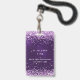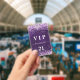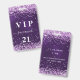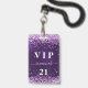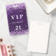 Ein modernes, stilvolles und glamouröses Abzeichen für eine 21. Geburtstagsfeier (oder jedes Alter). Ein lila Hintergrund mit violettem, rosa Konfetti. Die lila Hintergrundfarbe ist ungleichmäßig. Personalisieren und einen Namen hinzufügen. Der Name wird mit einem modernen handgeschriebenen Stilskript mit Swashes geschrieben. Der Text: VIP-Nummer 21. Um die Swashes behalten, löschen Sie nur den Beispielnamen, verlass die Leerzeichen oder Emoji's vor und nach dem Namen. Zurück: Ihre Party-Details.