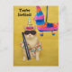 Bubba Kitty in einem hawaiianischen Shirt, Hut und Augenbinde, mit Fledermaus und Pinata. Individuell gestaltbare Geburtstagskarte.