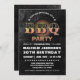 Einladung zum Geburtstag| Party GRILLEN. GRILLEN Geburtstagsparty Einladungen. Grill mit Vintagem dekorativem Text, schwarzer Chalkboard-Grunge-Hintergrund.
