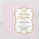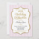 Eine elegante Geburtstagsfeier in Rosa und Gold mit rosa und weißen Streifen und goldfarbenem Glitzer. Der Glitzer Text-Rahmen auf dieser klassischen Geburtstagsparty lädt mit einem Schatten zu einem erhöhten Aussehen ein. Diese rosa und goldene Einladung ist sicher, diesen besonderen Geburtstagstern in Ihrem Leben gefallen. Perfekt für Meilenstein Geburtstage wie 18. 20. 21. 30. 35. 40. 45. 50. 55. 60. 65. 70. 75. 80. 85. 90. 95. und 100.oder jedes Alter! Auch für 10. und 20. 11. 12. 13. 14. 15. 16. 17. Jahre.