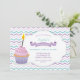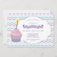 Niedliches Cupcake Thema Geburtstag Einladung in einem lila und türkisfarbenen Schema, mit einer cupcake Illustration und Zickzack Muster Hintergrund. Ideal für Backwaren oder Kuchen mit thematischen Party, für Geburtstagspartys im Allgemeinen.