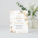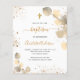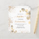 Eine moderne und elegante Einladung zur Taufe. Ein eleganter weißer Hintergrund mit goldenem Eukalyptusblättern. Personalisieren Sie und fügen Sie Ihr Foto des Kindes, danke Ihnen Notiz und Name. Geschlechterneutral. Zurück: weißer Hintergrund mit goldenen Imitaten Glitzer Staub.