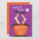 Fun Trick oder Treat Halloween-Party Einladung mit einer Hexe Spaß Illustration mit schwarzen Weiden Schuhen. Diese Lila, orangefarbene und schwarze Einladung ist perfekt für ein Halloween-Party der Kostüme. Machen Sie sich bereit, während dieser spektakulären Saison "Trick or Treat" zu machen. Wählen Sie zwischen Drucken oder einer Öko-freundlichen digitalen Einladung. Benutzen Sie den Abschnitt "Diese Vorlage personalisieren", um Ihre Informationen hinzuzufügen. Originelles Design von Ana Garza/Kardz Studio. Wenn Sie Fragen haben, kontaktieren Sie mich bitte über den Zazzle-Chat.