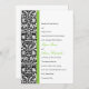 Die klassische Einladung wird durch ein schwarz-weißes Damast-Tapetenmuster mit Kalkgrün-Akzenten unterstrichen. Einfach mit Ihren eigenen Informationen personalisiert. Erhältlich in alternativen Farben mit passenden -the-Date-Karten, Empfang-Karten, Antwortkarten und Favoriten.