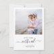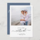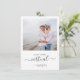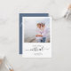 Rustikales minimalistisches Design mit modernem Drehbuch , botanischem Blumenblatt mit Foto und dustig blauem Kartenrücken. Personalisieren Sie einfach Ihre gewünschten Informationen. Ideal einfache Hochzeitseinladung für eine virtuelle Online Hochzeit.
