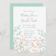 Mit dieser speziellen Einladung kündigen Sie Ihre Hochzeit an Ihre Freunde und Familie. Diese Hochzeitsankündigung zeigt ein Muster aus Korallen und Pfefferminzgrün mit blühenden Silhouetten auf weißem Hintergrund mit einer Minze- oder Meeresfrüchtefarbe auf der Rückseite. Sie können den Text auf der Produktbestellseite leicht anpassen.