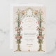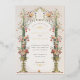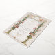 Diese Hochzeitseinladung ist eine romantische Leinwand, gemalt mit den sanften Tönen eines englischen Gartens. Die Blüten von Nelkenrosa, Korallen und Elfenbein kaskadieren verzierte goldene Urnen, die das Wachstum und die Blüte der Liebe symbolisieren. Der blumengeschmückte Bogengang mit zartem Grün umrahmt die Initialen des Paares in einem Viktorianischen Stil und schafft so einen einladenden Einstieg in die Feier der Einheit. Unten entfaltet sich eine malerische Szene mit einer Vogelfamilie, die das Thema des Zusammenlebens widerspiegelt. Dieses Design vereint zeitlose Eleganz, perfekt für das Paar, das den klassischen Charme vergangener Zeiten mit dem fröhlichen Versprechen ihrer Zukunft vereinen möchte.