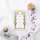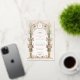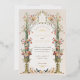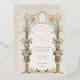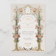 Diese Hochzeitseinladung ist eine romantische Leinwand, gemalt mit den sanften Tönen eines englischen Gartens. Die Blüten von Nelkenrosa, Korallen und Elfenbein kaskadieren verzierte goldene Urnen, die das Wachstum und die Blüte der Liebe symbolisieren. Der blumengeschmückte Bogengang mit zartem Grün umrahmt die Initialen des Paares in einem Viktorianischen Stil und schafft so einen einladenden Einstieg in die Feier der Einheit. Unten entfaltet sich eine malerische Szene mit einer Vogelfamilie, die das Thema des Zusammenlebens widerspiegelt. Dieses Design vereint zeitlose Eleganz, perfekt für das Paar, das den klassischen Charme vergangener Zeiten mit dem fröhlichen Versprechen ihrer Zukunft vereinen möchte.