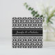 Diese fette Wedding Invitation in klassisch Schwarz und Weiß zeichnet sich durch einen modernen Einschlag auf das Vintage Damast-Muster aus. Sowohl die Vorderseite als auch die Rückseite dieser eleganten Einladung sind mit dem gleichen Damast-Muster in Schwarz und Weiß ausgestattet. Auf der Vorderseite stehen schwarz-weiße Bänder, die die Namen der Braut und der Groom markieren, während auf der Rückseite ein schwarz-weißer Rahmen für den Einladungstext steht. Vollständig anpassbar, kann diese Einladung leicht auf Anzug umgelegt werden. Wenn Sie Hilfe bei der Anpassung eines unserer Produkte benötigen, verwenden Sie bitte die Links "Kontakt" oder "Nachricht senden".