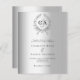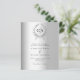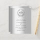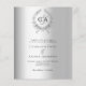 Ein Imitat silber aussehender Hintergrund und ein Kranz. Personalisieren Sie Ihre Monogramm-Initialen, Namen und Details und fügen Sie diese hinzu. Schwarzer Text. 1 Blatt = 1 Einladung mit Druckkante bis Kante.