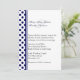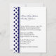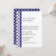 Stilvolle, maßgeschneiderte Hochzeitseinladung in Weiß, mit marineblauen Polka-Punkten und Streifen, auf der links Seite der Karte. Die Rückseite der Einladung ist massiv marineblau mit weißen Polka-Punkten. Schwarz und Marineblau sind auf der links Seite aufgereiht und können individuell angepasst werden.