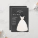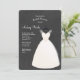 Eine schicke Einladung mit einem Hochzeitskleid, auf einem Hanger, vor einem dunklen Holzkohleboden. <br/>() Die Karte ist einfach zu personalisieren mit Ihrem Wortlaut, Schriftart, Schriftart Farbe, Papierform Optionen und Auswahl von sechs Papiertypen.<br/>() Nicht genau, was Sie suchen? Alle unsere Produkte können auf Ihre Bedürfnisse zugeschnitten werden, ohne Aufpreis.<br/>() Kontaktieren Sie uns einfach unter askpixieprints@aol.com.<br/>() ) Koordinierung der verfügbaren Produkte: frag uns einfach!