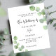 Weiße, mit Eukalyptusgrün dekorierte Untergründe. Personalisieren und Ihren Namen und Ihre Zeremonie Details. Schwarze Buchstaben. Zurück: grüner Hintergrund. Fügen Sie Ihre eigene URL zu Ihrer Hochzeitswebsite für Online-UAWG oder für weitere Details.