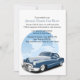 Eine klassische, blau-autofarbene Schönheit vor blauem Himmel und weißem Hintergrund lädt zu einem maskulinen Geburtstag, einer Autoshow und vielem mehr ein.Die Karte lässt sich leicht mit Ihrem Text, Schriftart, Schriftart, Papierform und der Auswahl von sechs Papiertypen anpassen.