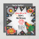 Super-Spaß Laser Tag Geburtstag Einladung mit bunten Laserpistolen Schießen auf ein Bullseye-Ziel mit coolen Comic Buch-Sternexplosionen und Wolke Gedanken Blasen. Anpassbar an Ihre Bedürfnisse. Handgezeichnete Abbildung von McBooboo.