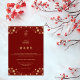 Dies ist eine wunderschön gestaltete Einladung zu einem Lunar-Neujahrsfest. Die Karte hat einen reichen roten Hintergrund, der Glück und Freude symbolisiert, ergänzt durch aufwändige sechseckige goldene Muster und Blumenmotive, die Wohlstand und Glück symbolisieren. Ganz oben steht ein goldenes Laternensymbol, das das Thema Beleuchtung und Tradition unterstreicht.