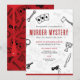 Laden Sie Ihre Party Gäste ein, um mit diesen Aufrufen zum Mord an Rot und Schwarz zu helfen. Das Design umfasst klassische Mordsymbolen wie einen Kerzenhalter, Axt, Messer und Lupe. Backside hat eine blutige Tropfen-Abbildung.