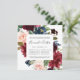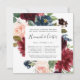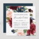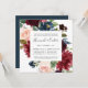 Unsere Probe-Dinner Radiant Bloom in einem einzigartigen quadratischen Format umrahmt Ihre Hochzeitsfeier Probe und Dinner Details mit bemalten Aquarellfarben-Blume in rot, bordeauxrot und marineblau, mit grünem Eukalyptus-Blattwerk.
