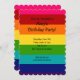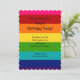 Rainbow-Geburtstagseinladung mit Regenbogenmustern in Rosa, Rot, Orange, Gelb, Grün, Blau und lila