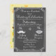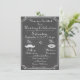 Alt modische Chalkboard Hochzeitseinladung mit Lippen und Schnurrbart. Die Rückseite hat eine maßgeschneiderte You are my sunshine Artwork.