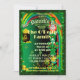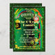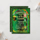 St. Patrick's Day Party Einladung mit einem grünen vierblättriges Kleeblatt und einem grünen Glitzer.
