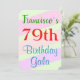 Dieses lustige Geburtstagsgeschenk-Einladung-Design enthält eine Nachricht wie "Franciscos 79. Geburtstagsgala", wo der Name und die Geburtstagsnummer personalisiert werden können. Es bietet auch einen lustigen, farbenfrohen, geometrisch inspiriert Hintergrund. Die Veranstaltungsdetails auf der Rückseite können individuell angepasst werden. Es könnte genutzt werden, um Leute zu jemandes neunundsiebzigsten Geburtstagsfeier oder Geburtstagsparty einzuladen. [~Z0000311]