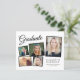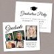 Moderne, preisgünstige Graduiertenfeier mit 5 Foto-Collage verstreuter Bilder in schwarzen Rahmen, "Graduate" in einem eleganten Drehbuch, der Name des Absolventen in klassischer Serifentypografie, das Schuljahr und das Klassenjahr in einfacher Schrift und Ihre personalisierten Party-Details auf der Rückseite. Dieses halbglänzende Haushaltspapier ist gewichtsähnlich wie Foto. Es ist auch eine größere 12x18-Kartenversion verfügbar (für den Link die Meldung).