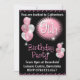 9. Geburtstagsparty Einladung mit Ballons. Farbschema Rosa und Schwarz.