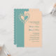 Diese elegante Hochzeitseinladung zeigt Pfirsichfarben und Aquamarine Farben mit einem skurrilen Herzbild und verleiht ihm eine romantische Touch für den besondere Anlass. Ideal für Hochzeiten mit einem klassischen Pfirsichthema und Aquamarinen Themen und Farben wie Strandhochzeiten und Hochzeiten im Sommer und Frühling. Sie können auch für Brautpartys und Polterabend verwendet werden, indem Sie den Text anpassen, um genau zu sagen, was Sie brauchen. Suchen Sie in meinem Shop nach passenden UAWG!
