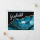 Aquamarine blaue Aquarelltexturen mit goldenen Glitzer-Geode-Venen sind Set vor einem knusprigen schwarzen Hintergrund auf unserer eleganten Abschlussfeier Einladung. Vor der Karte passt eine Skriptgrafik, die "Graduate" in sanft blauer Schrift ausdrückt, zum Blau der Cap- und Tassel-Abbildung sowie zum Namen und Jahrgang des Absolventen. Der Name und das Abschluss Jahr sind mit der praktischen Vorlage leicht personalisiert. Alle Texte auf der Rückseite der Einladungskarte können vor dem Auschecken mit derselben Vorlage schnell überarbeitet werden. Ein passendes Design steht auch auf einer Postkarte zur Verfügung, zusammen mit einer koordinierenden Rücksendeaufkleber für den Postversand.