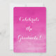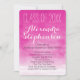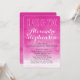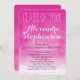 Lebhafter, aufregender fuchsienfarbener Aquarellhintergrund mit weißen vertikalen Text- und Script-Graduierteneinladungen. Schöne künstlerische Darstellung weiblicher mädchenhaft ausdrucksstarker und künstlerischer Farben.