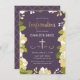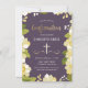 Diese moderne und hübsche Einladung enthält eine illustrierte Blumengrenze und das Wort "Bestätigung" in Gold. Der Hintergrund ist eine lila (pflaumenfarbene) Farbe, kann aber an jede gewünschte Farbe angepasst werden. Auf der Rückseite des Einladens befindet sich ein Quatrefolienmuster mit lila Hintergrund, das ebenfalls ausgetauscht werden kann. Der Text ist für Ihre besondere religiöse Veranstaltung individuell einstellbar.