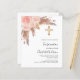 Rose goldfarbene und rot-rosa Blumen, Rose und Pampas Gras und ein goldenes Kreuz. Personalisieren und fügen Sie einen Namen und Details. 1 Blatt = 1 Einladung mit Druckkante bis Kante.