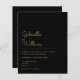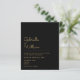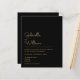 Elegantes Drehbuch Budget Hochzeitseinladung mit einem klassischen Design, das das Set der glücklichen Paare in einem eleganten goldenen Drehbuch über die besonderen Hochzeitsdetails auf schwarzem Hintergrund. Entwickelt von Thisisnotme©