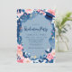 Feiern Sie die Errungenschaft des Absolventen mit dieser eleganten Abschlussfeier Einladung. Das Design vereint marineblau-rosa Aquarellakzente und verleiht dem Ganzen ein elegantes und fröhliches Ambiente. Eine skurrile Sternenstreuung ergänzt den modernen Script-Schriftart und formt die Veranstaltungsdetails. Personalisieren Sie diese Vorlage mit Namen, Datum, Ort und UAWG.